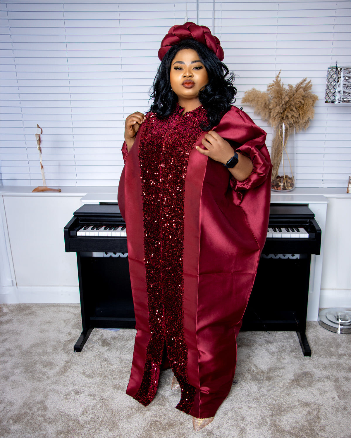 African Wine Maxi Boubou with Matching Headpiece
